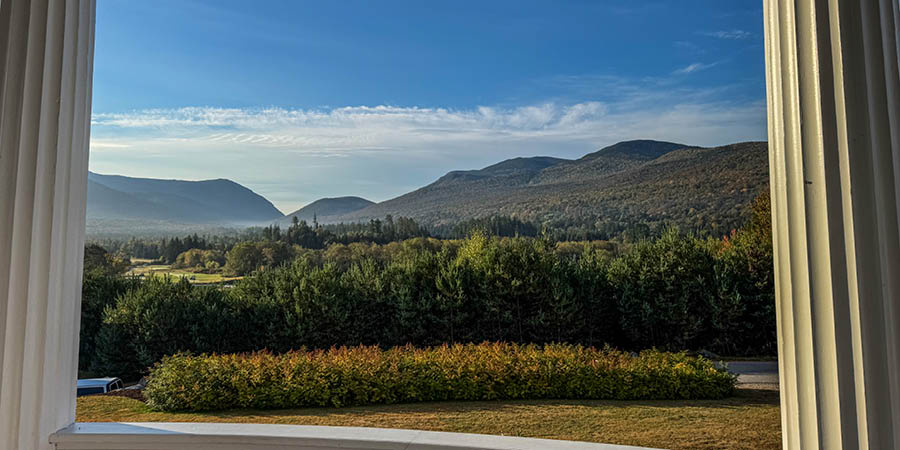 Just sat on the veranda early in the morning, watching the sun rise from behind the mountains was a pleasant way to start the day. Two must-dos in the area are the Mount Washington Cog Railway and the Conway Scenic Railroad.