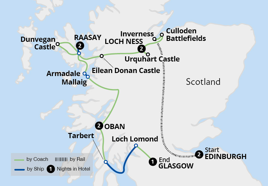Embark on a one-of-a-kind vacation, delving into Scotland's legendary world of castles, kings, fairy folk and mythical monsters. Hear evocative tales of stories of important clans and historic battles, and experience the wild beauty of the Highlands and mystical Isle of Skye. On this multi-center exploration, stay in Edinburgh and Glasgow, the...