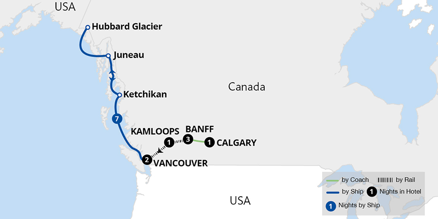Embark on this spectacular discovery of natural wonders by land and sea. From the mountain town of Banff in the Canadian Rockies, marvel at the spellbinding beauty of Lake Louise before boarding the iconic Rocky Mountaineer. With two daylight-only journeys, we travel to Vancouver, from where an unforgettable cruise through the Inside Passage...