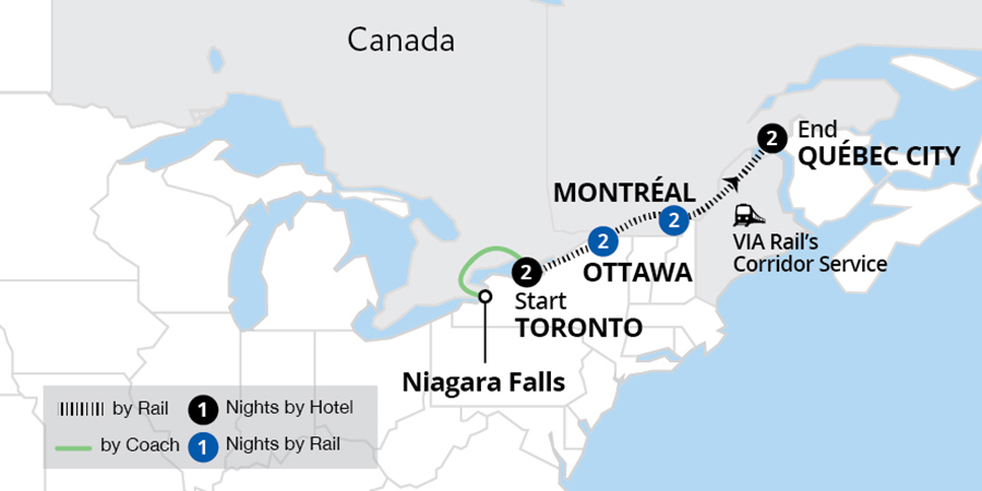 Fairmont Le Chateau Frontenac. Business class rail aboard the train