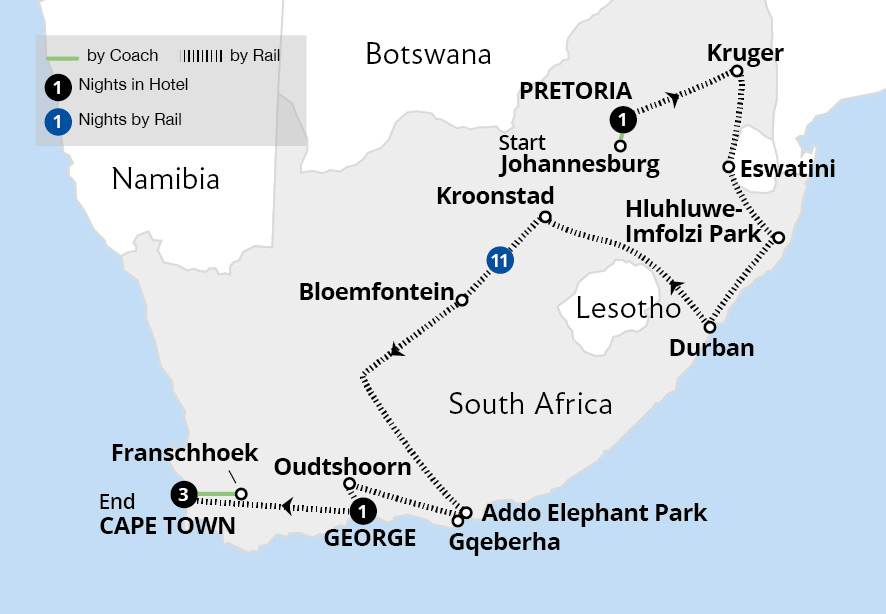Indian Ocean and Durban, passing lush sub-tropical forests,