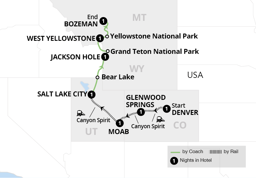 Arriving in Salt Lake City, the journey continues by coach as you follow stunning routes wrapped in natural grandeur. Stay in Jackson Hole, where you visit Grand Teton National Park, before driving to West Yellowstone and, finally, arriving in beautiful Bozeman.