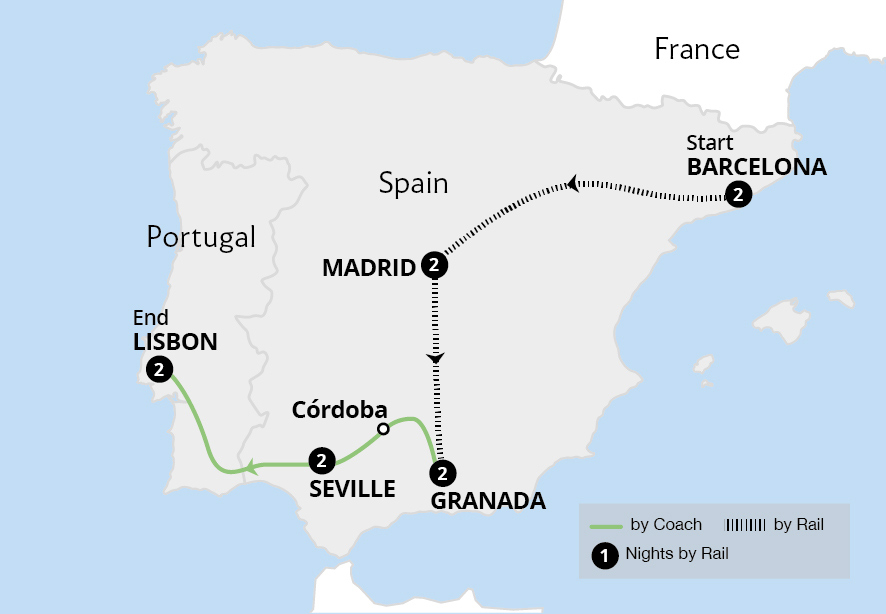 Explore Spain and Portugal's greatest sites, led by a professional Tour Manager and local guides, discovering a rich culture, striking landscapes and famous gastronomy. Starting in Barcelona, we discover the city's highlights on a guided tour then travel by high-speed rail to see Madrid and its monuments, experience Granada's magnificent Alhambra...